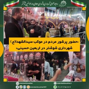 به گزارش روابط عمومی شهرداری شوشترموکب سیدالشهدا(ع) شهرداری شوشتر به مناسبت اربعین حسینی برپا شد و با حضور پرشور مردم، میزبان عزاداران حسینی بود. تصاویر، گوشههایی از این حضور عاشقانه را به تصویر کشیده است.
