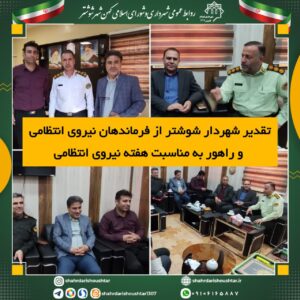 علی واهبی شهردار شوشتر با سرهنگ کاظمی فرمانده نیروی انتظامی شهرستان و سرهنگ کرمپور رئیس راهور شوشتر دیدار کرد.