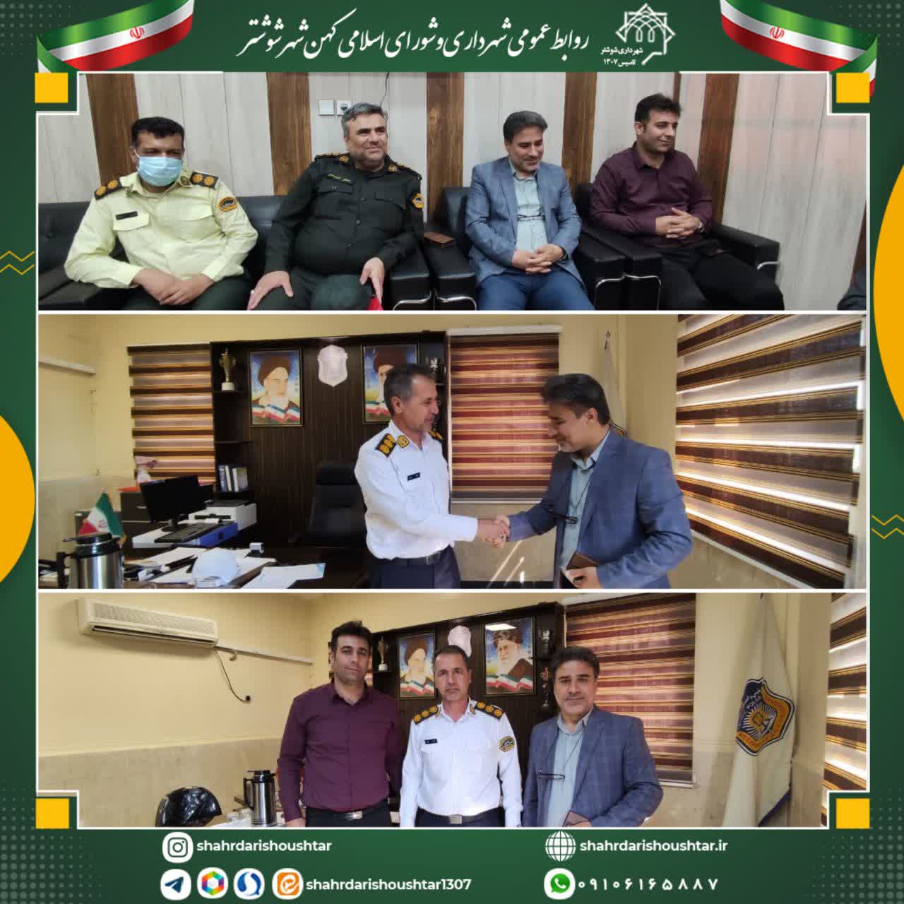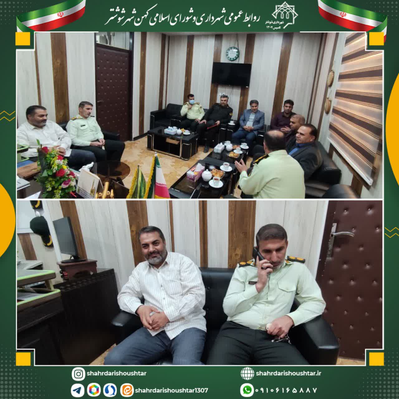 علی واهبی شهردار شوشتر با سرهنگ کاظمی فرمانده نیروی انتظامی شهرستان و سرهنگ کرمپور رئیس راهور شوشتر دیدار کرد.