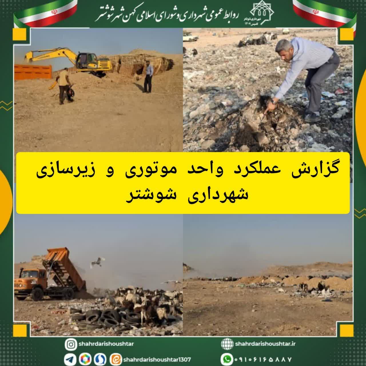 به گزارش روابط عمومی شهرداری و شورای اسلامی شهر شوشتر، مهندس کعب سرپرست واحد موتوری و زیرسازی شهرداری شوشتر با تاکید مهندس واهبی شهردار شوشتر اظهار داشت: عملیات خاکریزی بهمنظور اطفای حریق در سایت دفع زباله شهری توسط ماشینآلات شهرداری ادامه دارد.